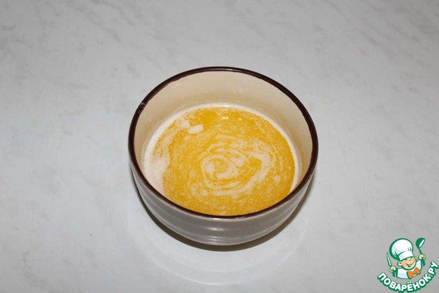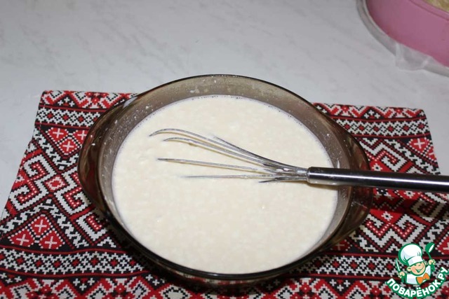 Добавляем молоко и хорошо перемешиваем венчиком. Добавляем творожный сыр.
