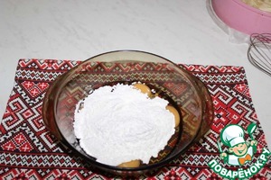 Готовим заливку. К яйцам добавляем сахарную пудру.