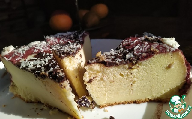 После выключения приоткрываю дверцу духовки на спичечный коробок и даю постоять чизкейку т. о. ещё 30-40 мин.