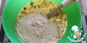 Затем гречневую муку/150 гр с разрыхлителем/ 16гр.