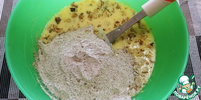 Нарезаем крупно орехи/70 гр и вводим в тесто.
