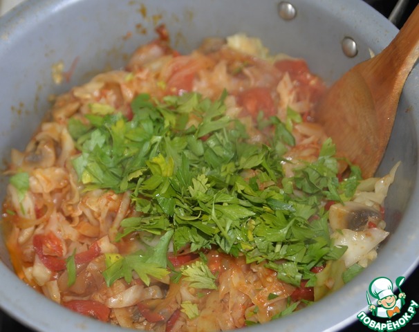 Рецепт «Тушёная капуста с грибами и пряностями»: