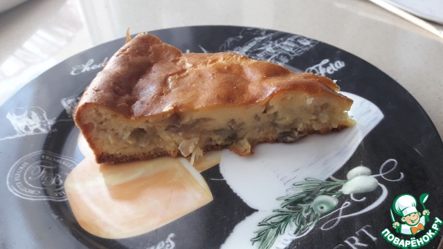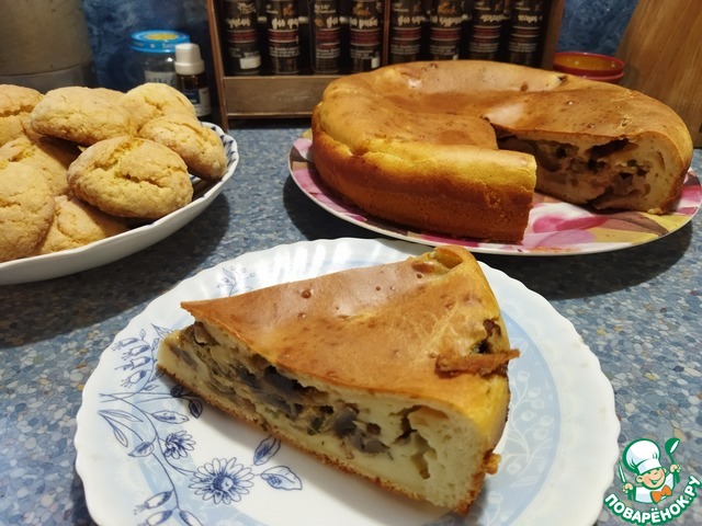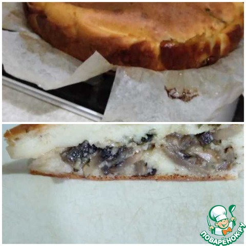 Простой в приготовлении пирог, в котором много сочной грибной начинки с сыром и зеленью и совсем немного теста! Хорош и как самостоятельное, сытное блюдо и как дополнение к основным на обед или ужин!