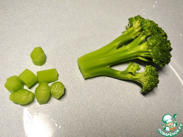 Нарезаем брокколи букетиками, при этом длинные ножки тоже нарезать, желательно предварительно сняв шкурку.