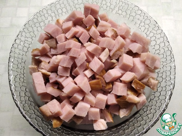 - Карбонад (Можно вполне использовать мясной орешек или ветчину.) — 300 г