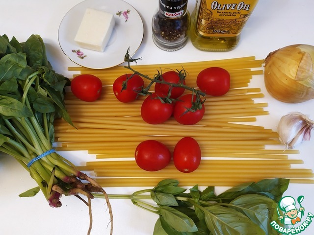 Ингредиенты для «Спагетти с черри и шпинатом»: