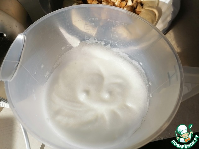 • Белки отделить от желтков. Белки хорошо взбить с щепоткой соли