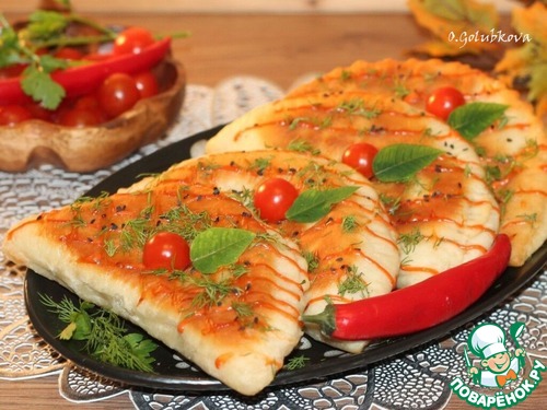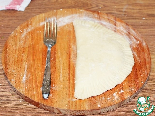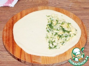 12. Закрываем начинку, второй половинкой лепешки и защипываем края.