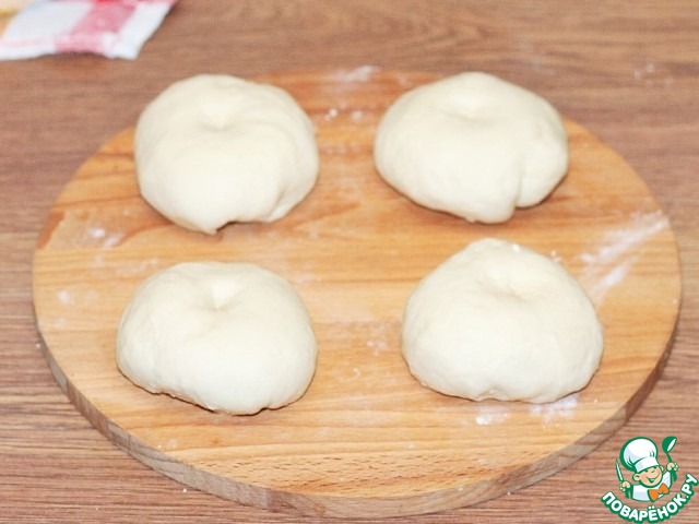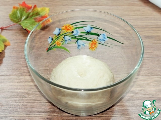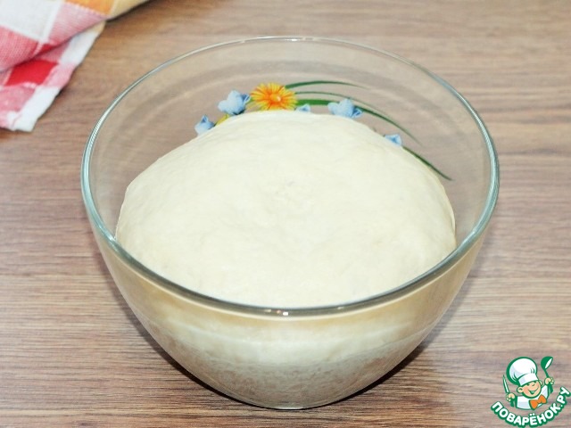 6. Замесить мягкое тесто не липнущее к рукам. Смазать миску и тесто растительным маслом (1 ст. л.). Накрыть миску пленкой и поставить в теплое место для подъема теста в 2,5 раза.
