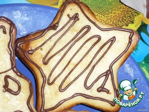 2 )Наполнить разогретые формы для выпекания тестом на 2 /3 и выпекать 30 мин при 200 С. Украсить по желанию, я украсила растопленным шоколадом.