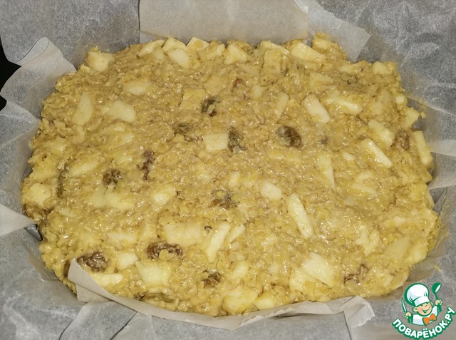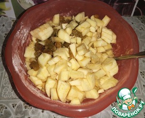 В последнюю очередь добавить изюм и яблоки. Аккуратно перемешать.