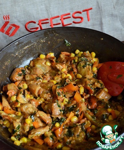 • Влить сливки, тушить под крышкой 3 минуты, огонь минимальный,