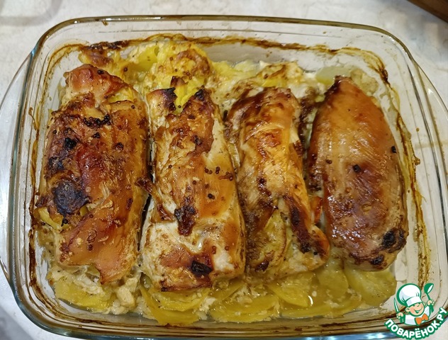 Куриные бёдра с картофелем и сыром