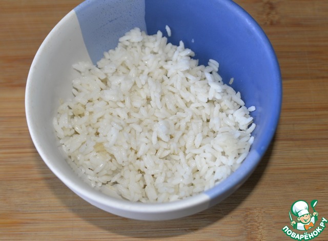 Если у вас есть в наличии "вчерашний рис", то можно использовать его. Если нет, то рис промываем, заливаем водой, доводим до кипения и варим на среднем огне до полуготовности.