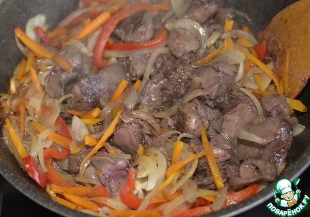 Ингредиенты для «Куриная печень с овощами и рисом»: