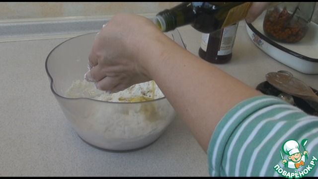 Добавляем растительное масло и вмешаем его в тесто. У нас оно должно получиться мягким и эластичным.