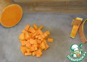 Тыкву чистим, режем мелкими кубиками, кладём в кастрюлю, заливаем водой, доводим до кипения и варим до готовности 10-15 минут.