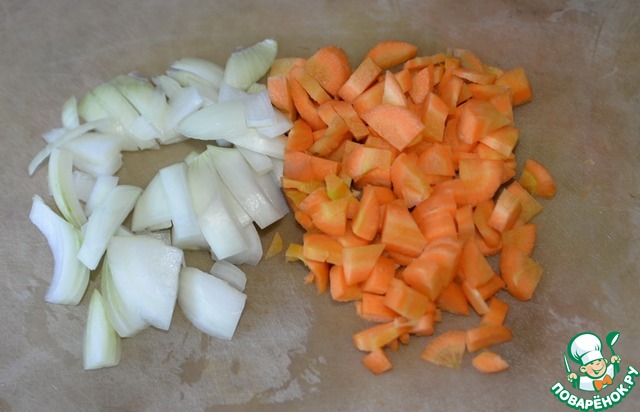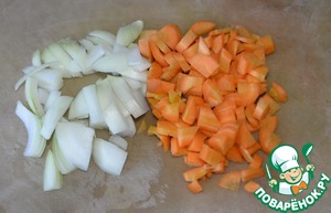 Обжариваем на среднем огне на растительном масле лук и морковь около 5 минут.