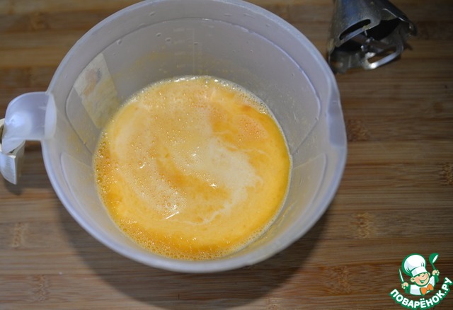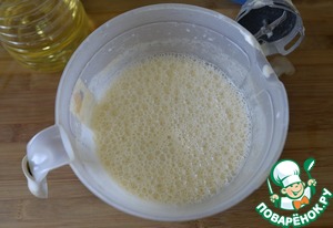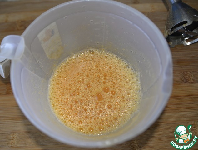 Готовим блинное тесто. Тыкву вместе с жидкостью пробиваем блендером.
