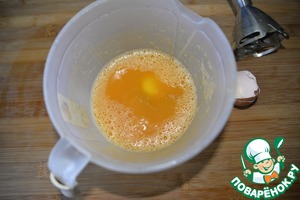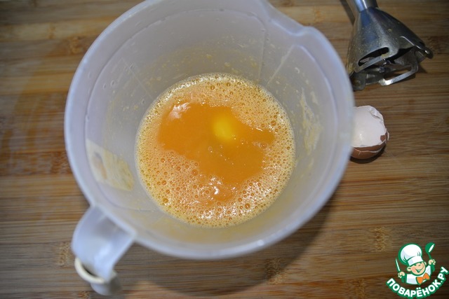 Кладём соль, яйцо. Сахар не нужен, так как тыква и так сладкая, а блинчики закусочные. Перемешиваем.