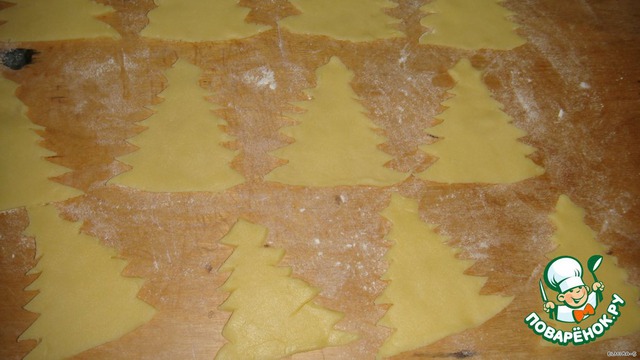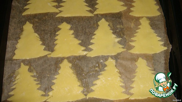 • Переложите елочки на противень и поставьте в разогретую духовку до 200С,на 20-30мин