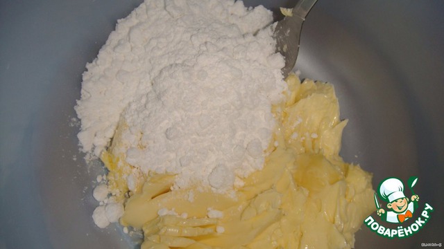 • Масло размягчить и растереть с сахарной пудрой