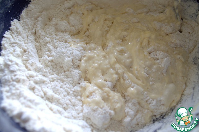 Размять тесто в пласт по бумаге для выпечки, смазав руки маслом. Можно раскатать. Этот пирог не будет слишком высоким, теста в меру.