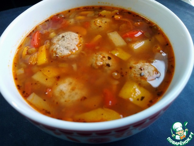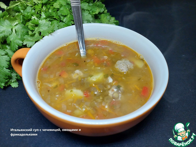 Рецепт «Итальянский суп с чечевицей, овощами и фрикадельками»: