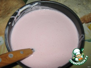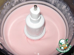 Взбила сухие сливки с 130 мл молока, я брала сливки со вкусом клубники)))