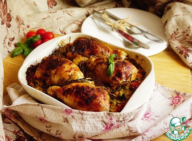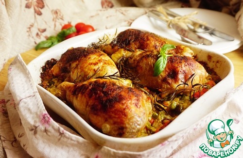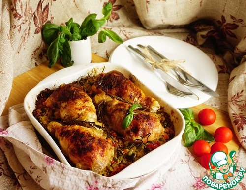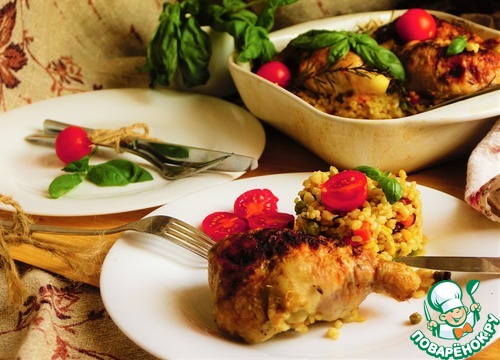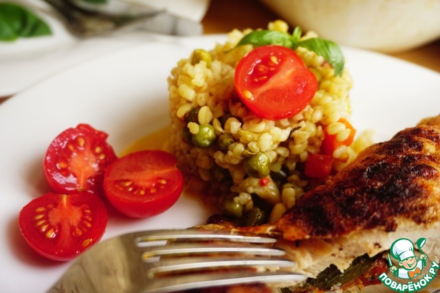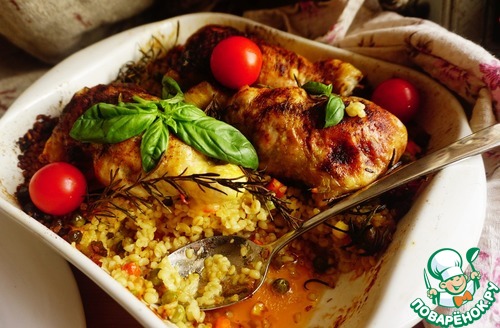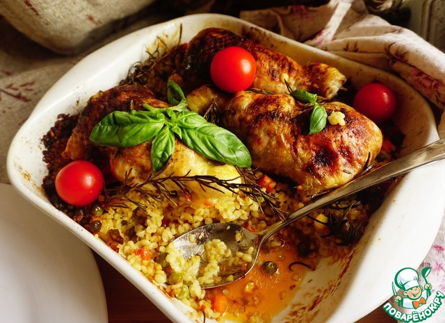Ну вот я и вышла на 7 уровень! В честь этого я хочу вас угостить потрясающим блюдом из куриных окорочков. Без косточки, с сыром, базиликом и вялеными томатами. А на гарнир ароматный булгур с овощами и куриным бульоном, пропитанный соком из окорочков. Заходите и угощайтесь!