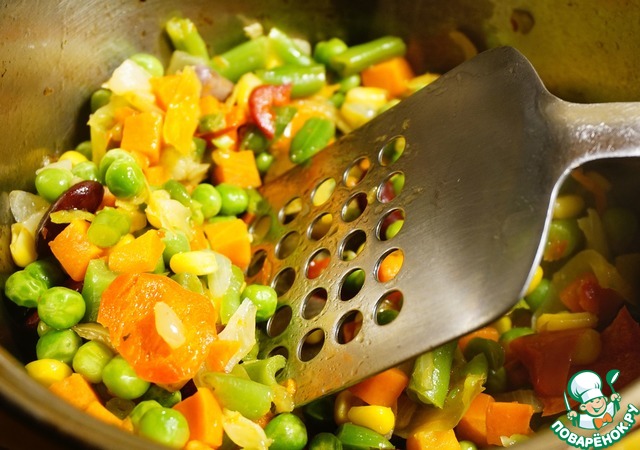 - Кукуруза (мексиканская смесь замороженная. В ингредиентах ее нет) — 300 г