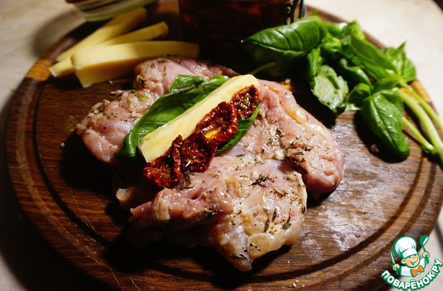 Рецепт «Фаршированные окорочка с моцареллой и вялеными томатами»: