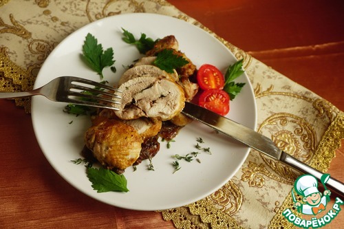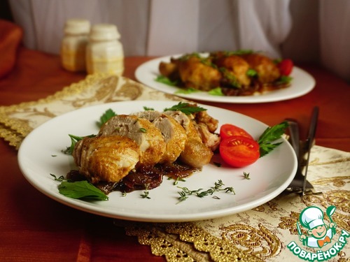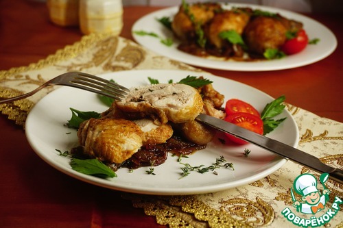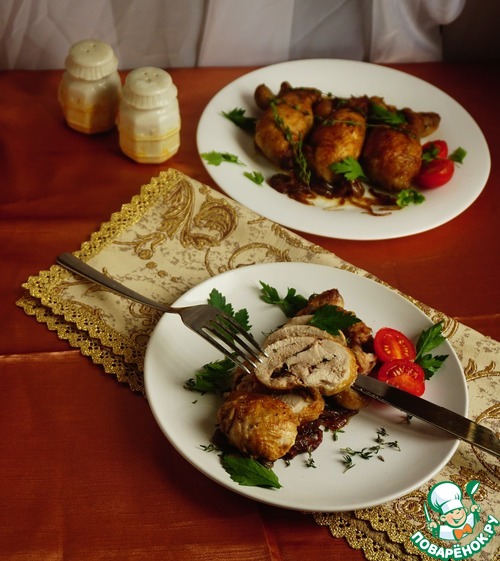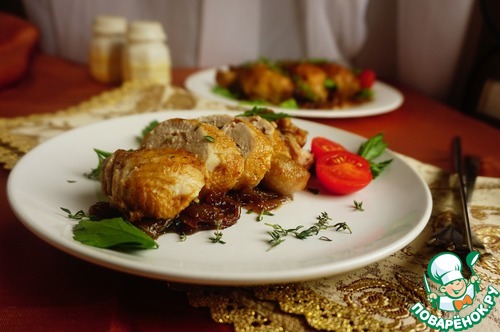 Рецепт «Рулеты из перепелиного филе с луковым гарниром»: