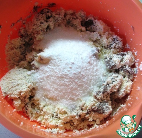 Добавить сахар, ванильный сахар, щепотку соли и 1 ч. л. соды без верха. Перемешать.
