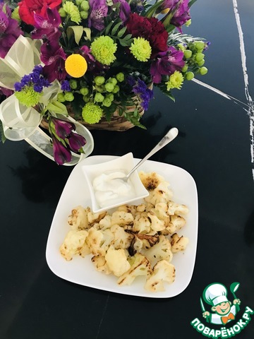 Готово! Капуста получается очень хрустящей снаружи и сочной внутри, с этим соусом будет очень вкусно, но так же ее можно подавать и с любым другим.
