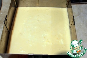 Выложить в квадратную форму 18x18см и печь при 180 градусах 40 минут, ориентируйтесь на свою духовку.