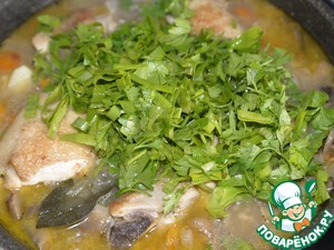 Кладём в суп рубленные зелёный лук и петрушку, перемешиваем, доводим до кипения. Отключаем огонь, даём супу настояться 10 минут.