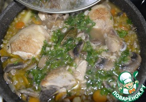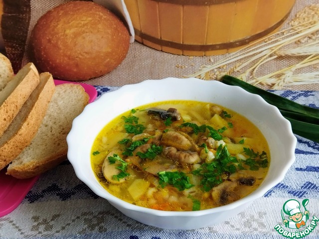 Ингредиенты для «Куриный суп с перловкой и грибами»: