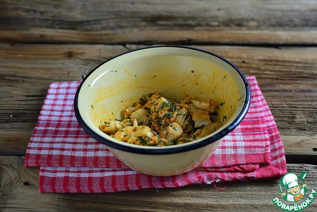 Масло смешать с паприкой, чесноком через пресс и рубленным укропом.