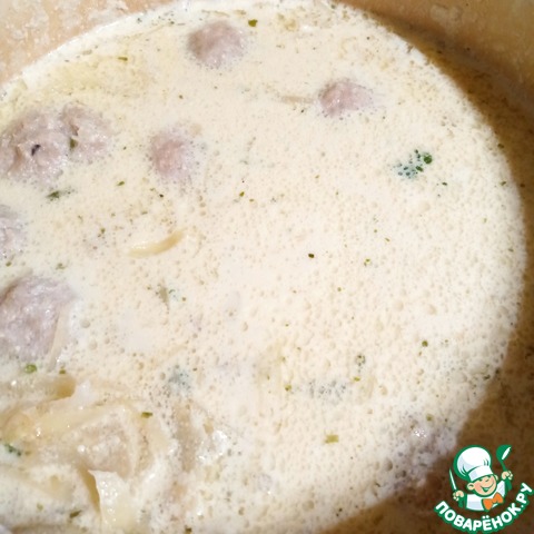 Рецепт «Сливочный суп с капустой и фрикадельками»: