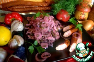 Подаём горкой рядом с мясными продуктами: купатами, колбасками, сосисками.