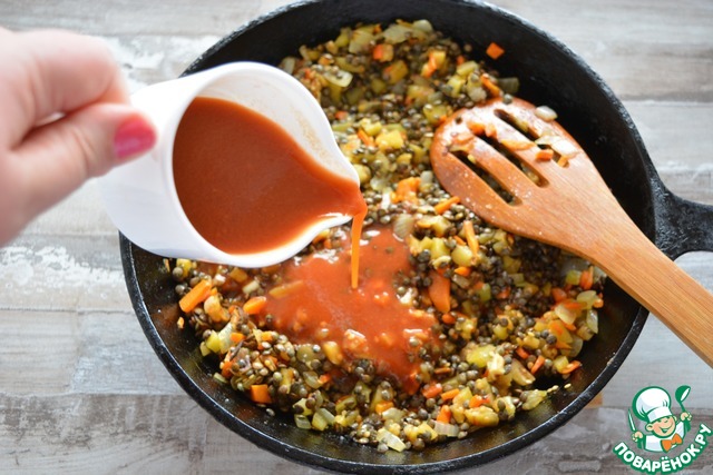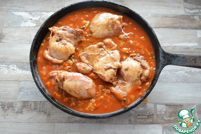 Рецепт «Цыпленок с чечевицей в томате»: