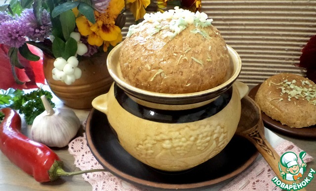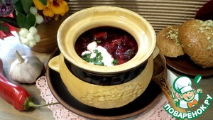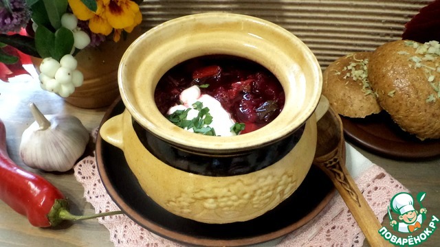Рецепт «Борщ в горшочке с чесночной булочкой»: