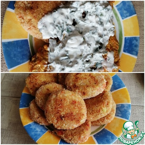 Формируем из полученной смеси галеты и обваливаем в муке. Можно обвалять в яйце и потом в панировочных. И обжариваем на растительном масле до готовности.