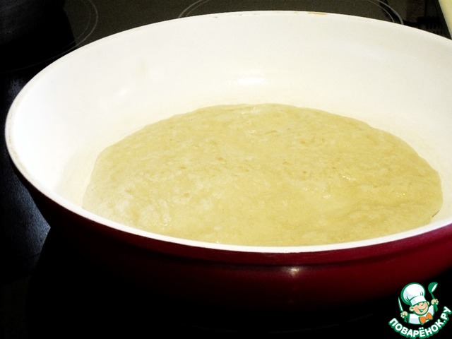 Хорошо прогреть сковороду, влить немного растительного масла, лишь прикрыть дно. Опустить на горячее масло тесто. Надо немного его "обжечь" и сразу перевернуть.