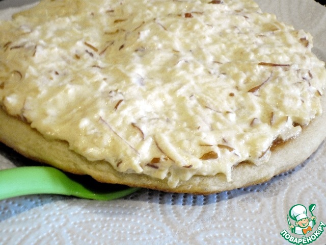 нанести четвертую часть начинки на всю поверхность лепешки. Огонь уменьшить.