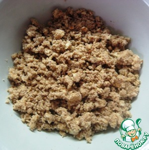 Добавить кусочки холодного сливочного масла и руками перетереть до получения крошки.