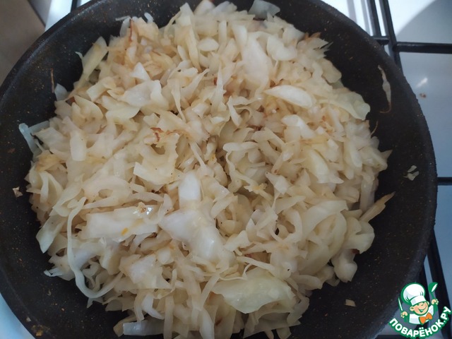 Обжариваем капусту на сковороде на небольшом количестве растительного масла, до момента, когда капуста изменит свой цвет.