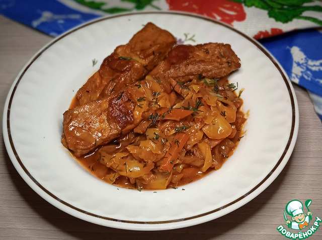 Рецепт «Тушеная капуста со свиными ребрами»: