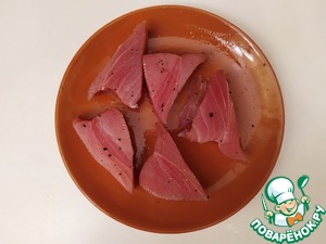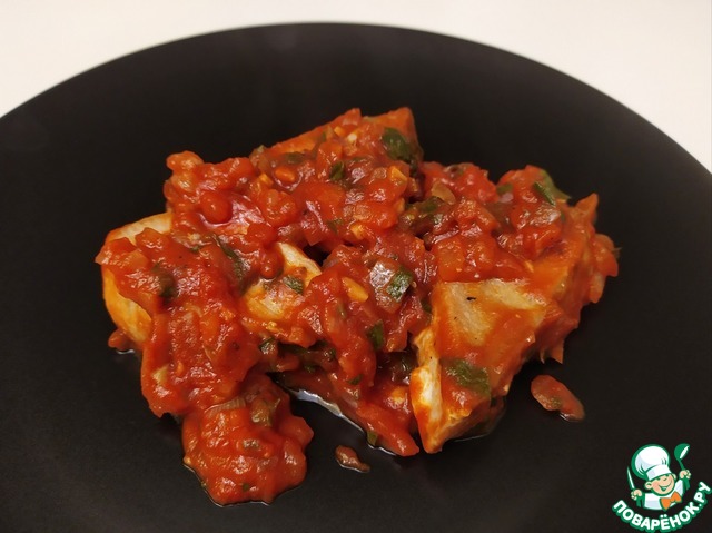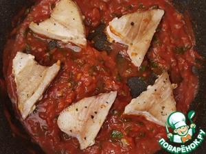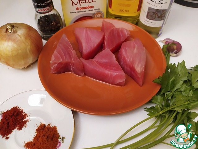 Простой и быстрый рецепт стейка тунца в томатном соусе.